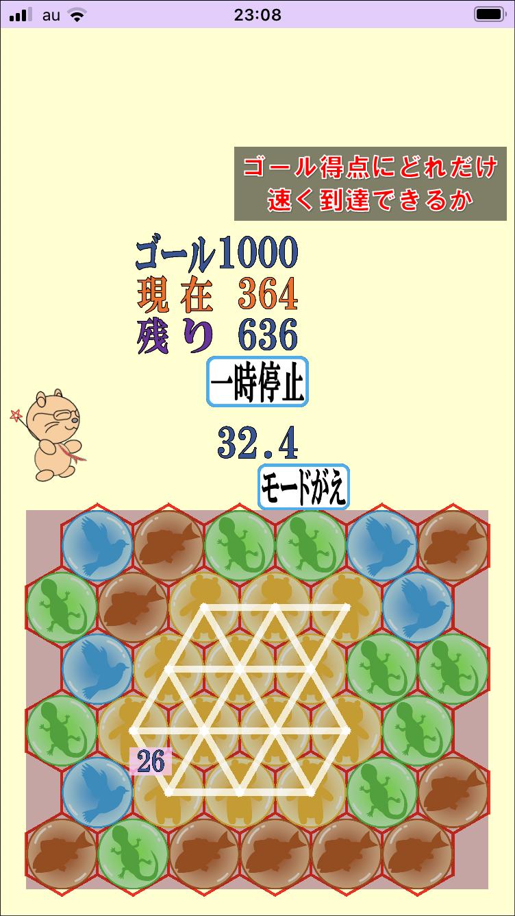 マスとマスの間あたりをさわって中身をくるくる入れ替え。同じ色をたくさんつなげよう。