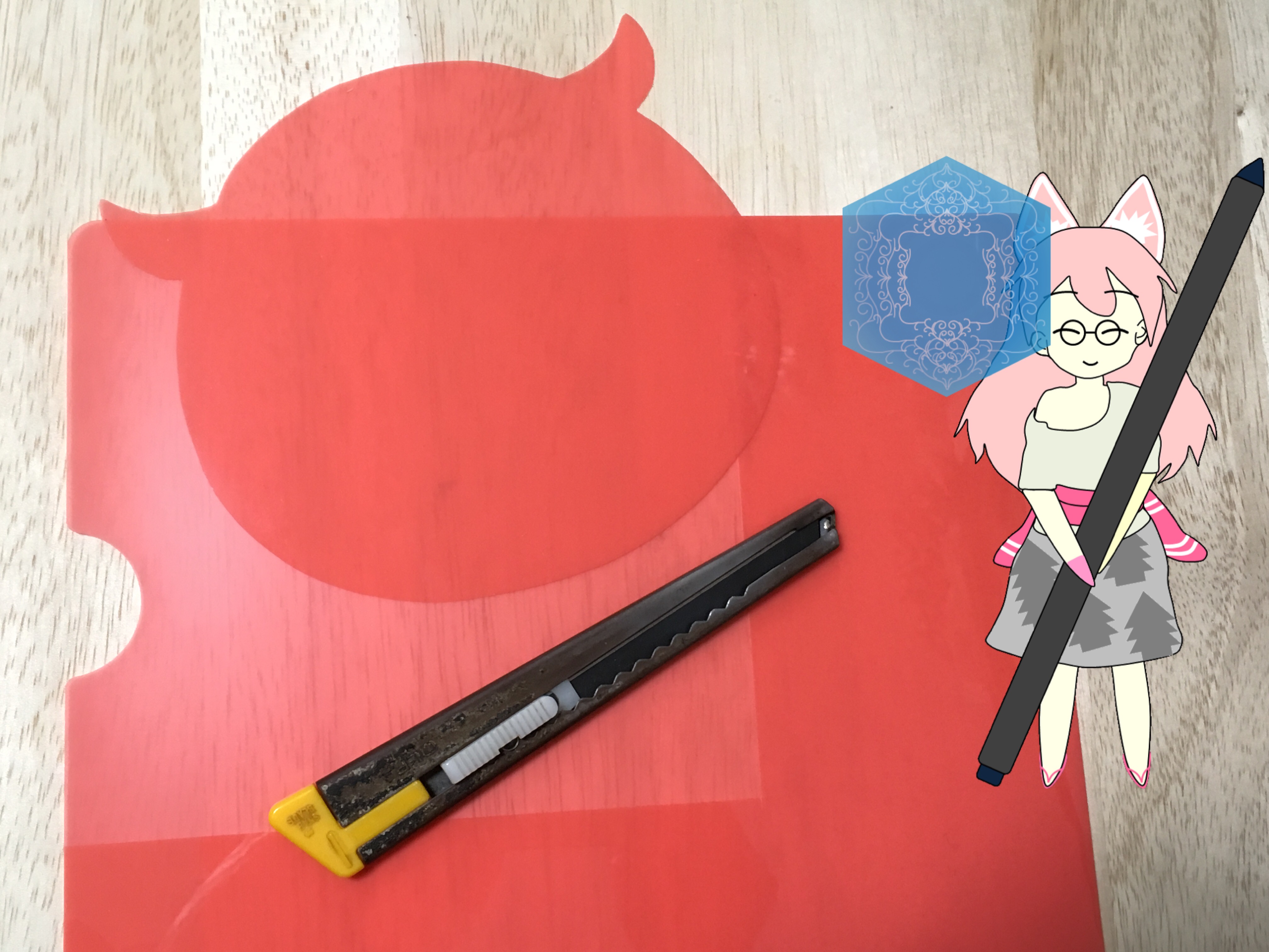 クリアファイルを切り抜いて、へんたつのオープニングアニメに出てくるものっぽいものを作ってみました。