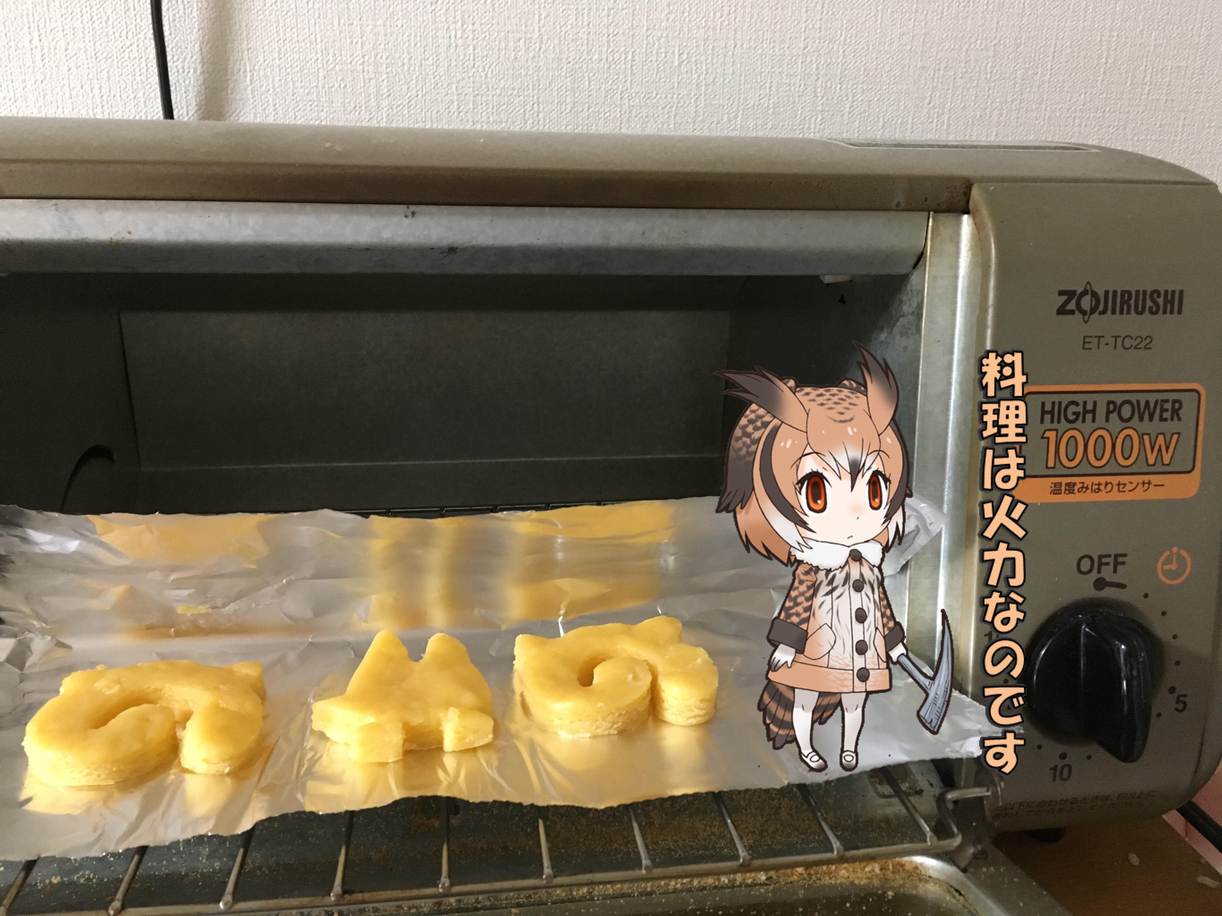 オーブントースターの中には、1000ワットとか500ワットとか250ワットとか火力を変更できるものもありますが、私の家にあるオーブントースターは、強火の1000ワットしかできません。「料理は火力なのです。(じょしゅふうに)」という感じです。