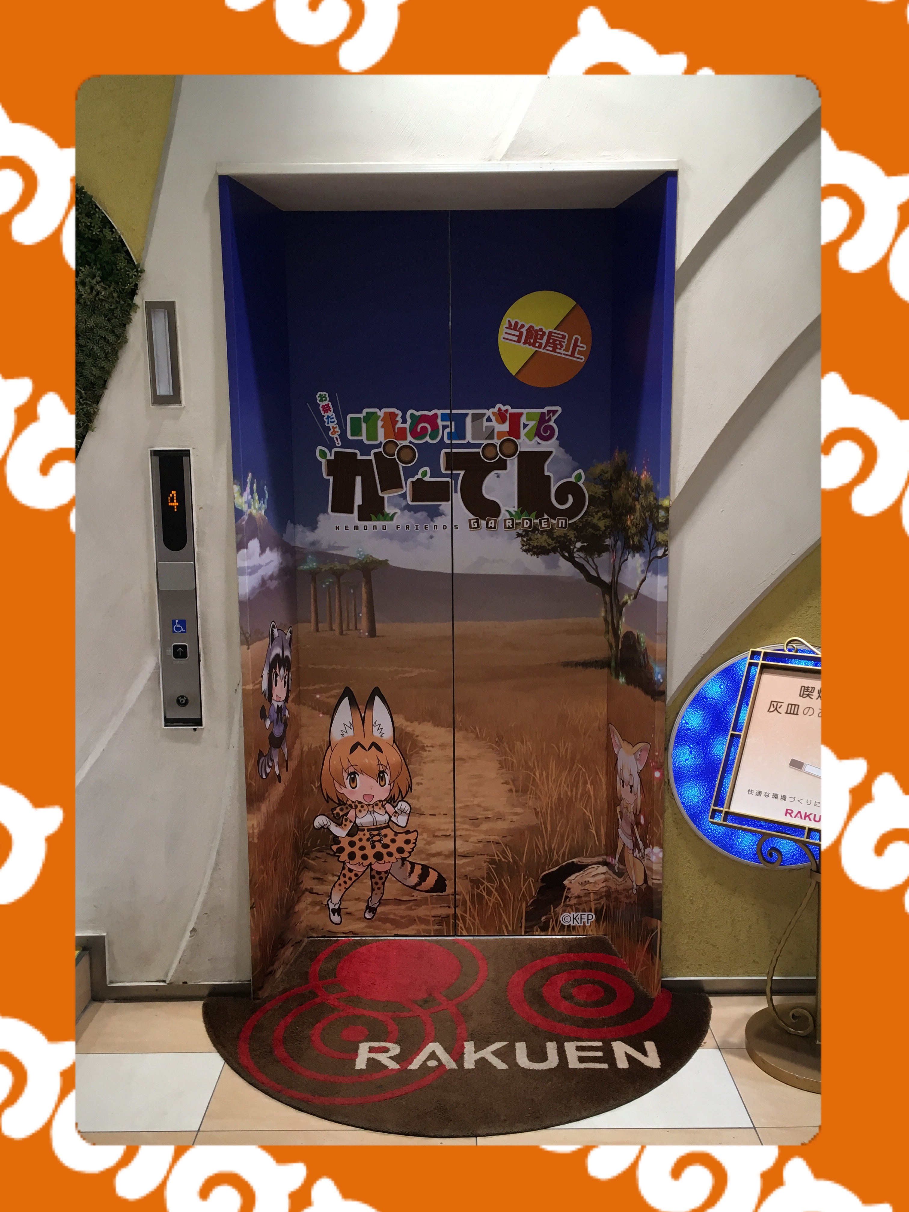 そろそろ「けものフレンズがーでん」に入場です。このエレベーターが、「けものフレンズがーでん」につながるエレベーターですね。
