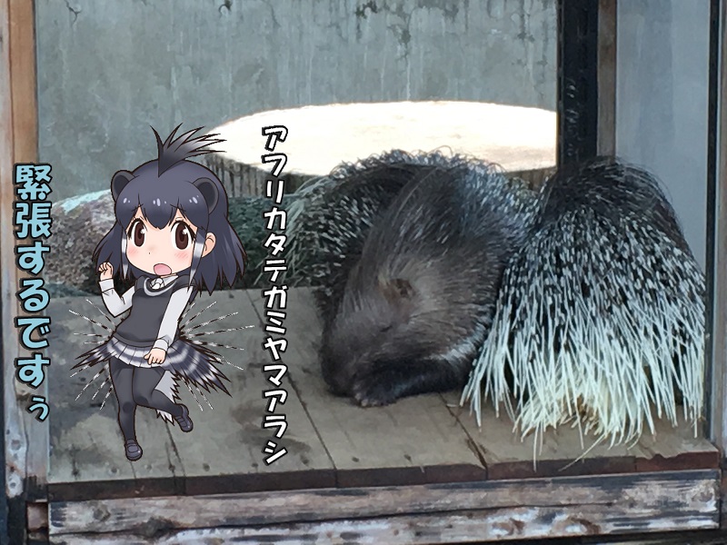 正面の方から見ると、フレンズのアフリカタテガミヤマアラシさんの頭のてっぺんに毛が飛び出ている理由がわかる感じがします。