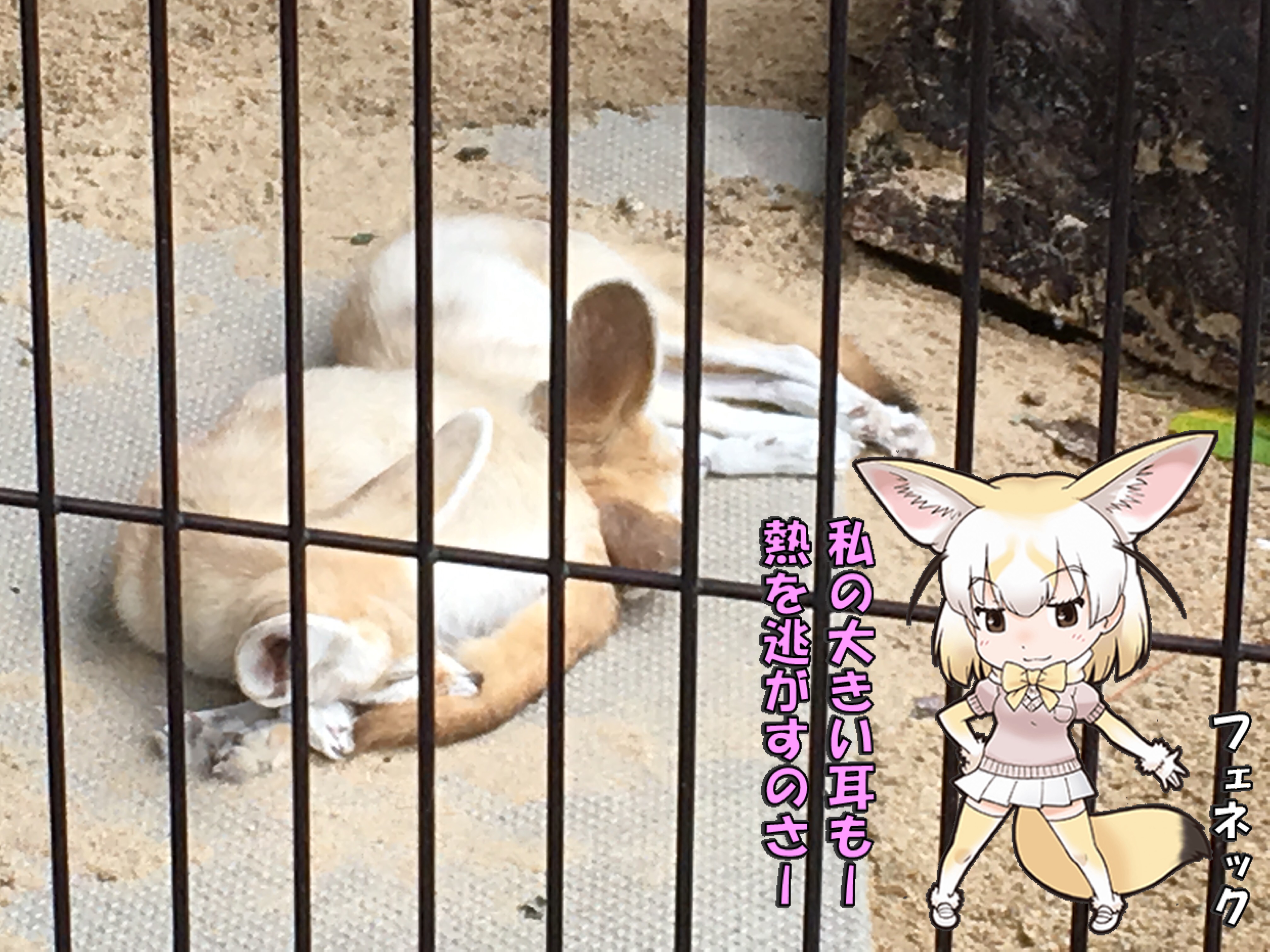 今はみんな寝てます。そういえばフェネックは夜行性の動物でしたっけ。しばらくしたら起きてくれるかなー。今日は起きてるところの写真も撮りたいなー。