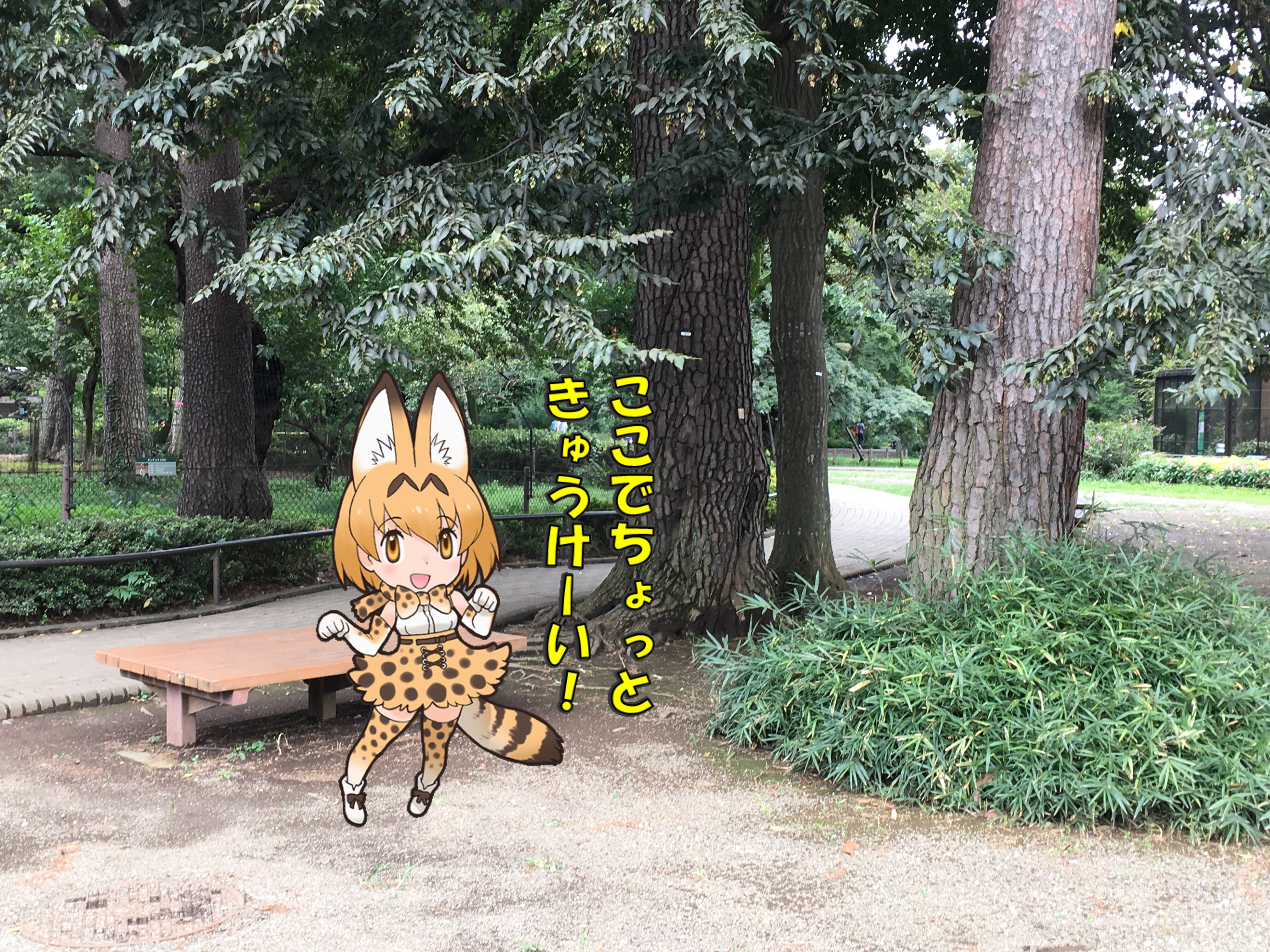 けものフレンズとコラボレーション[2017年9月21日(木)〜10月22日(日)]している井の頭自然文化園(東京都武蔵野市)で、2017年9月23日(土)に、「おすすめの場所をめぐろう」というスマートフォン用アプリを使って合成写真を撮りながら、勝手にジャパリパーク(動物・植物・フレンズと遊べるテーマパーク)気分を味わってきました。