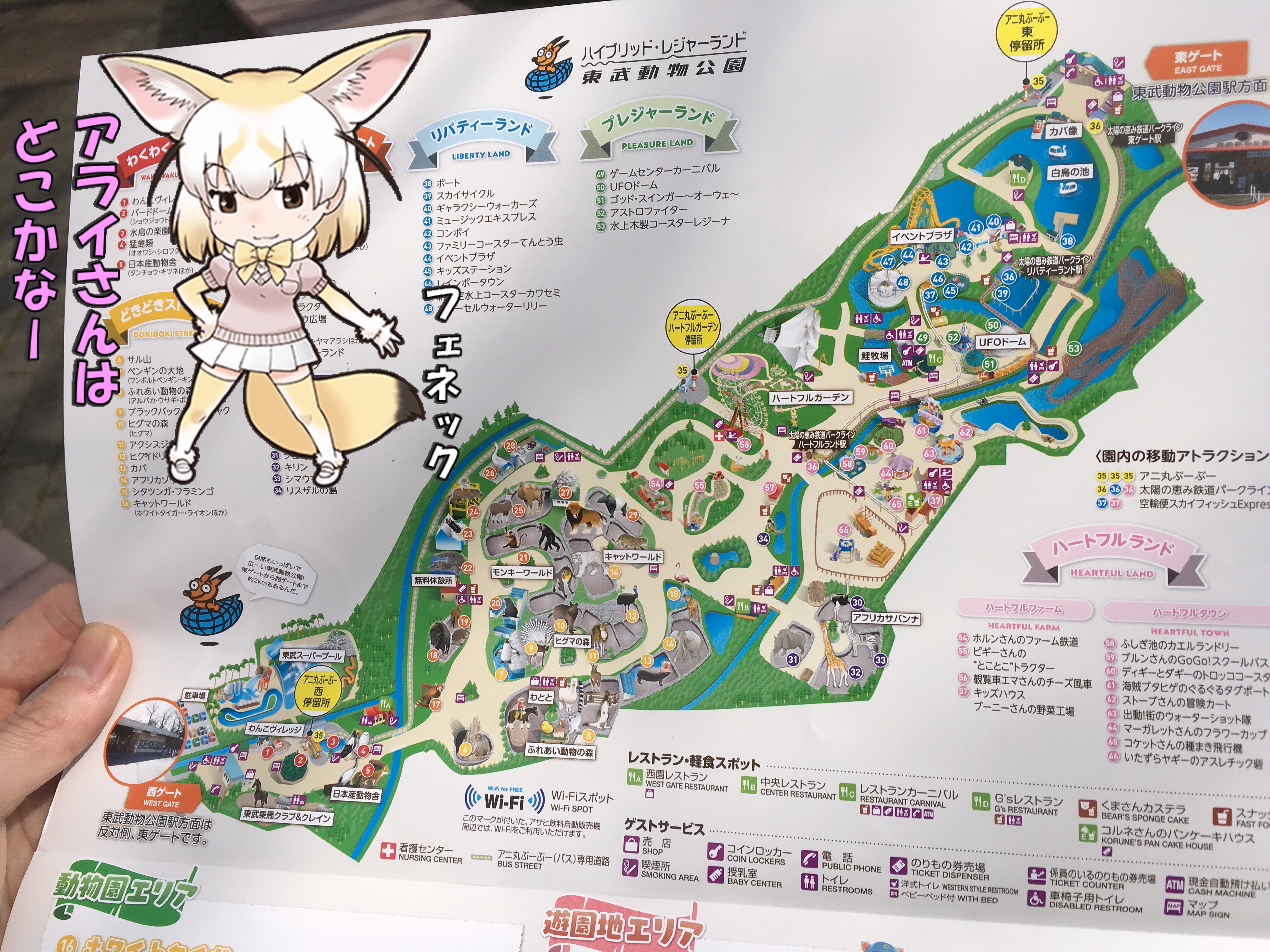 けものフレンズとコラボ[2017年4月22日(土)〜6月25日(日)]している埼玉県の東武動物公園で、2017年4月22日(土)に、勝手にジャパリパーク気分を味わうために、「おすすめの場所をめぐろう」というスマートフォン用アプリを使って撮ってきた写真です。