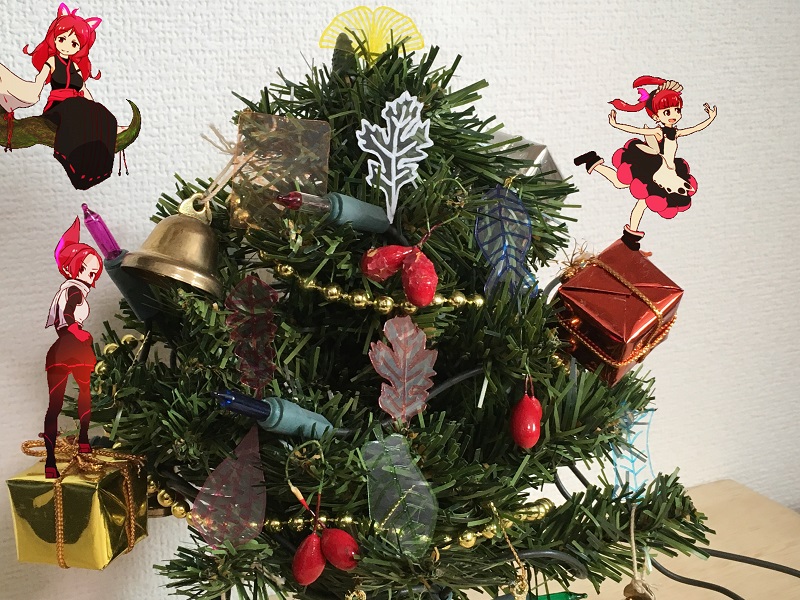 自作の小さなケムリクサでクリスマスツリーを飾ってみました。