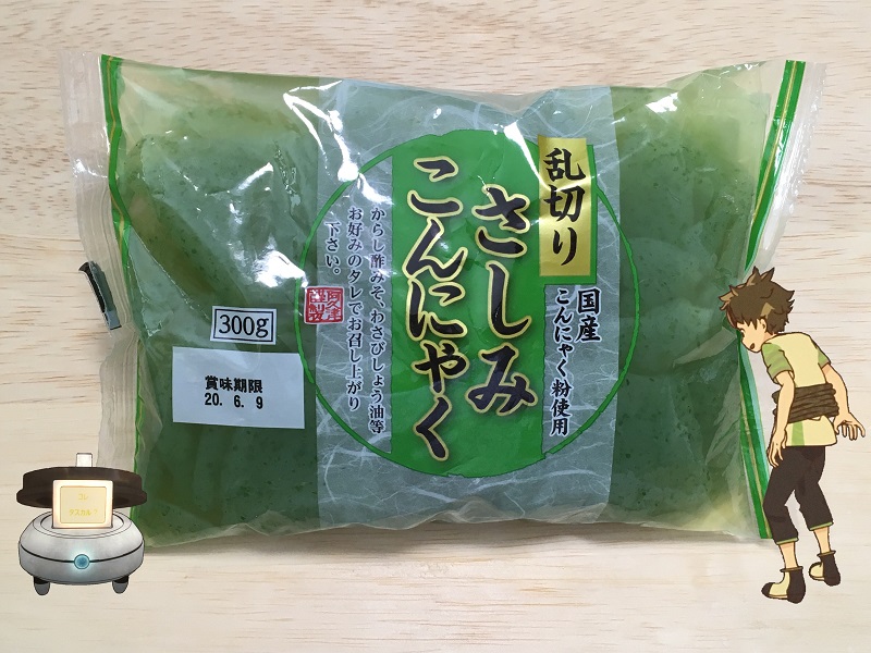 スーパーマーケットで、緑色のさしみこんにゃくを買ってきました。