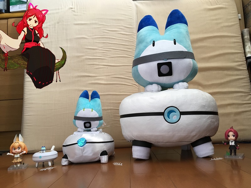 ケムリクサのシロの上に、けものフレンズ1期アニメのボス(ラッキービースト)を乗せてみました。大・中・小。