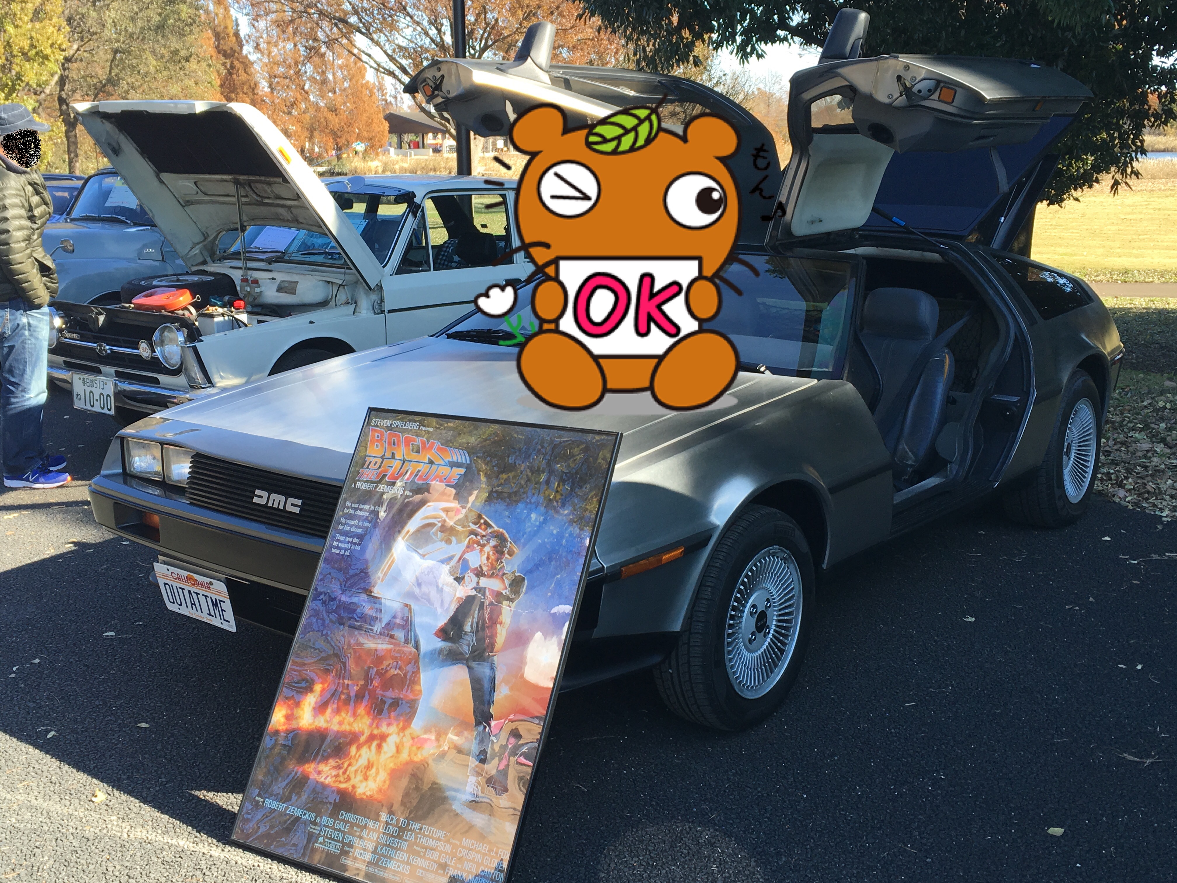なぜかクラシックカーエリアもあります。どっかで見たタイムマシーンみたいな車もありました。