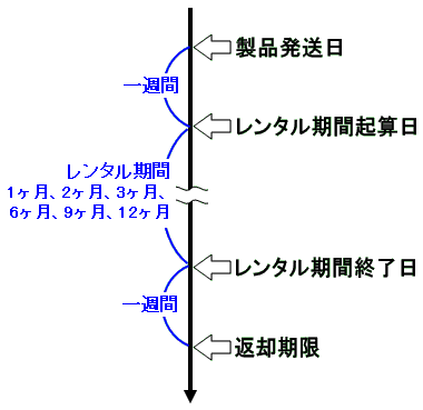 レンタル期間は、当社がレンタル製品を発送した日の一週間後を起算日とし、お客様が申し込みをしたレンタル期間とします。