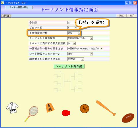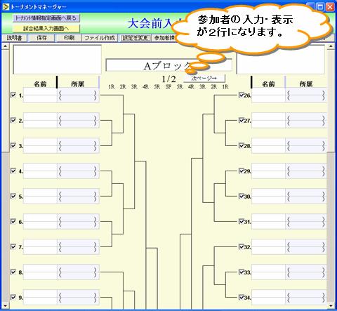 1参加者の行数を2行にすることができます。主にダブルス種目の場合に 2行にすることを想定しています。