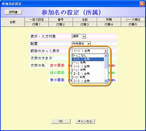 項目の前後のかっこ表示や、下線の有無なども指定できます。