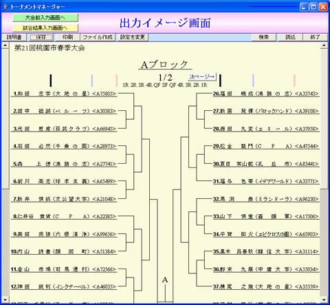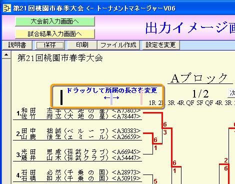 参加者の表示形式は、トーナメント表作成後でも自由に変更できます。