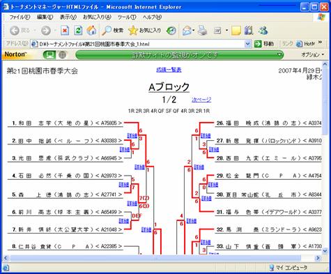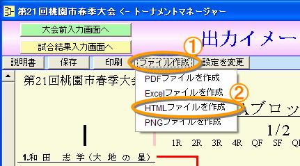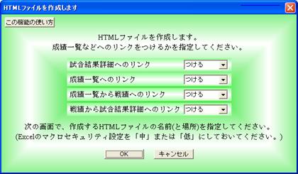 HTMLファイルを作成できます。 成績一覧や試合結果詳細へのリンクのついたHTMLファイルも自動で作成することもできます。