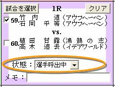 例えば、試合の予定が決まった参加者を呼び出した時、来た参加者にチェックをつけるようにしておくと、 まとめてたくさん呼び出しを行っても、来ていない参加者がすぐにわかります。