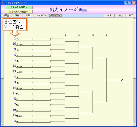 - 参加数 32の場合:3位と4位、5位〜8位の位置が抽選