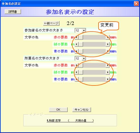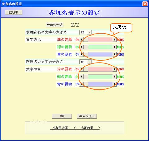 線の色や文字の色を指定するためのスクロールバーについて、背景に、指定する要素の色を つけたほうがわかりやすいと判断し、色をつけました。
