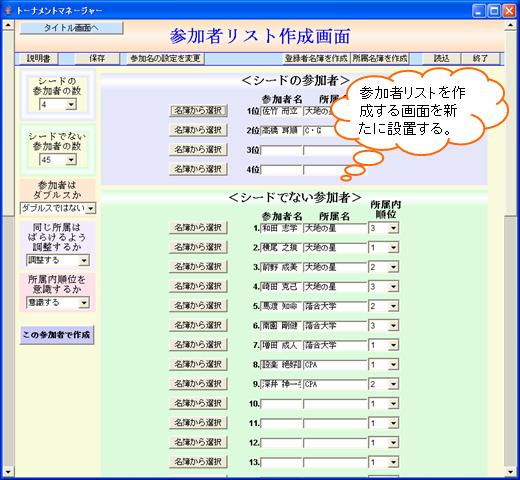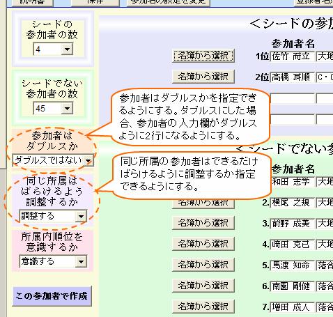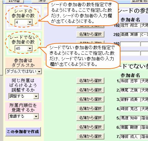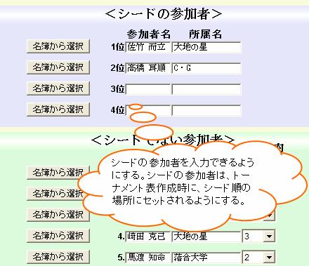 - シードの参加者と、シードでない参加者を区別して参加者を入力