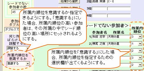 シード順位の高い場所にセットされるようにできるようにする。また、所属内での