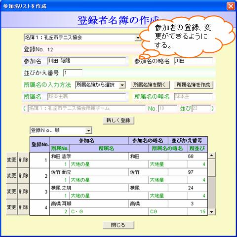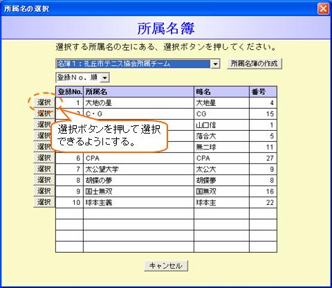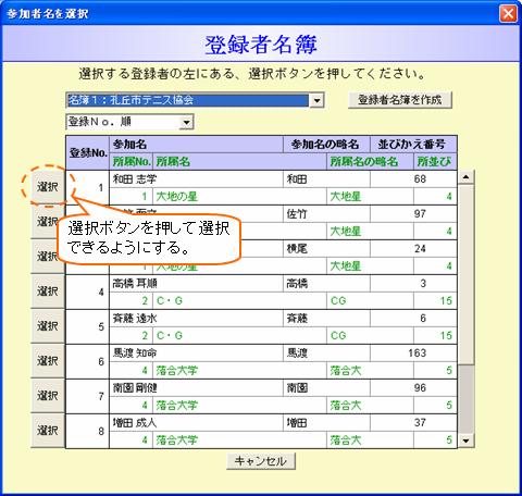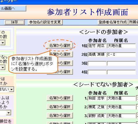 選択できるようにする。参加者リスト作成画面で、シードでない参加者を名簿から