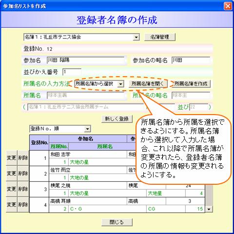 - 登録者の所属は、所属名簿から選択して入力できるようにする。所属名簿から