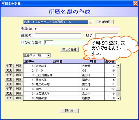 - 所属名簿に所属を追加したり、所属の情報を変更したりできるようにする。。