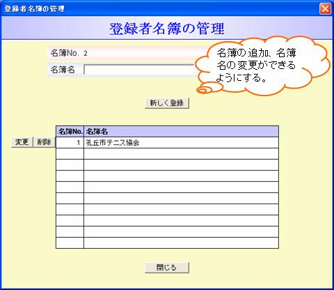 - 登録者名簿に登録者を追加したり、登録者の情報を変更したりできるようにする。