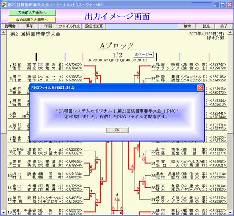 トーナメント表のPNGファイル(主にホームページ用の画像ファイル)を作成する機能を開発。
