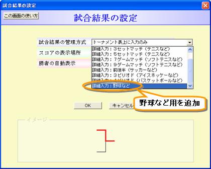 試合詳細を入力する画面として選択できる画面の種類に、野球用の画面を追加。