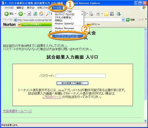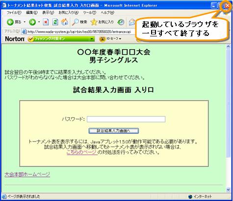 Javaアプレットが動作可能でないと、トーナメント表が表示されません。