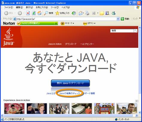ブラウザに JavaVM が入っていない、またはJavaVMのバージョンが古い場合は、
