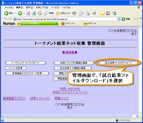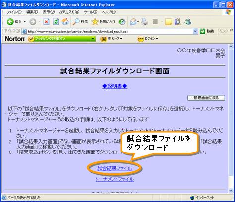 インターネットで集めた試合結果データは、ダウンロードしてトーナメントマネージャーで 取り込み可能です。