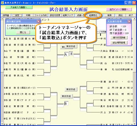 インターネットで集めた試合結果データは、トーナメントマネージャーで取り込み可能。