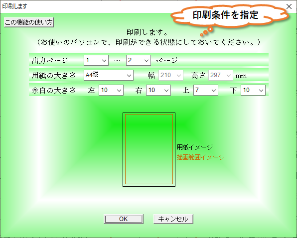きれいに用紙におさまるよう、トーナメント表の大きさは自動で調整されます。用紙の大きさや向き、余白の大きさなどを指定できます。