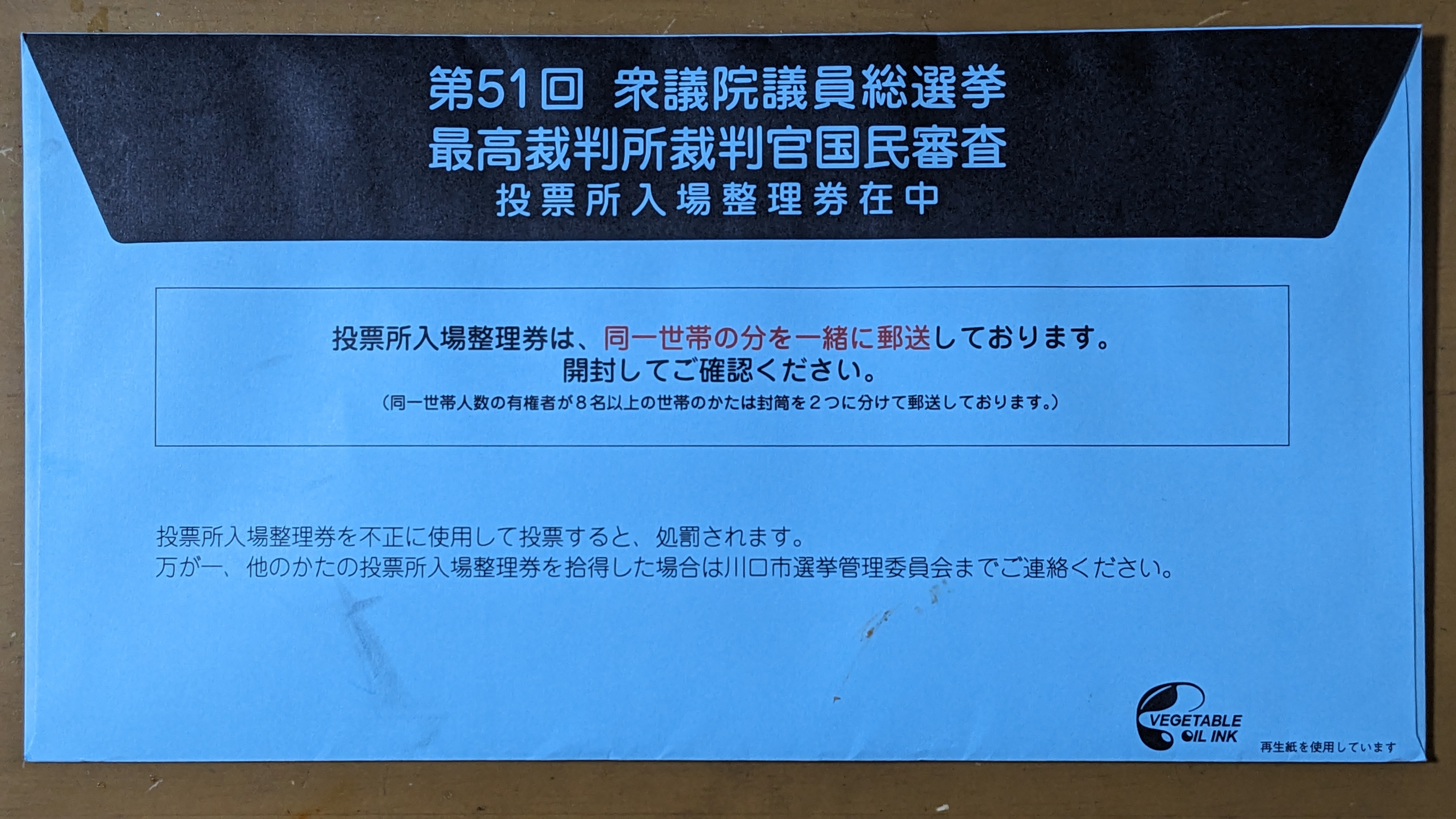 まあ、地域によっては、封筒じゃなくて、はがきで送られてくるところもあるらしいかな。「投票所入場整理券」っていう呼び名とはちょっと違う呼び名のところもあるかも。