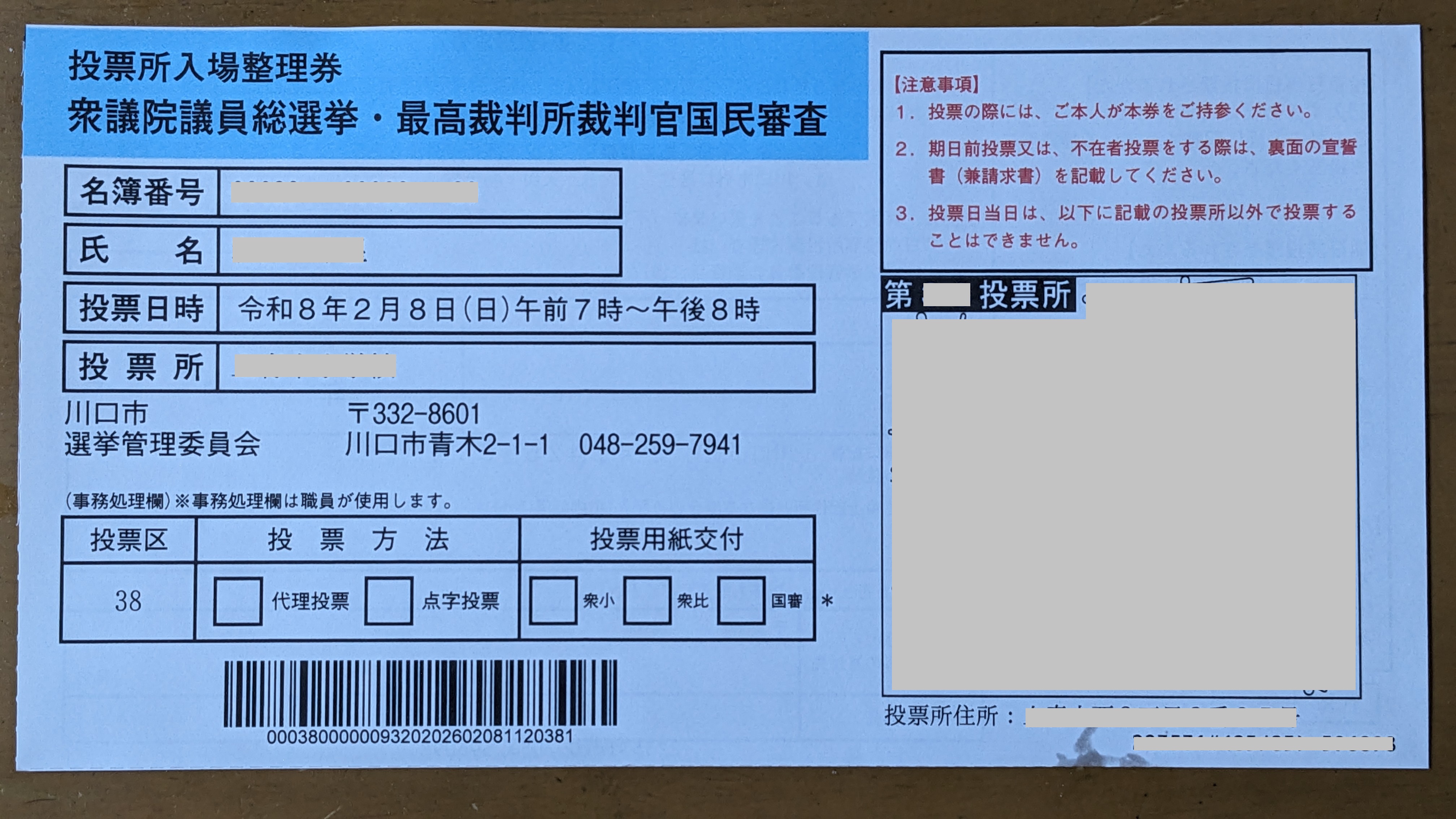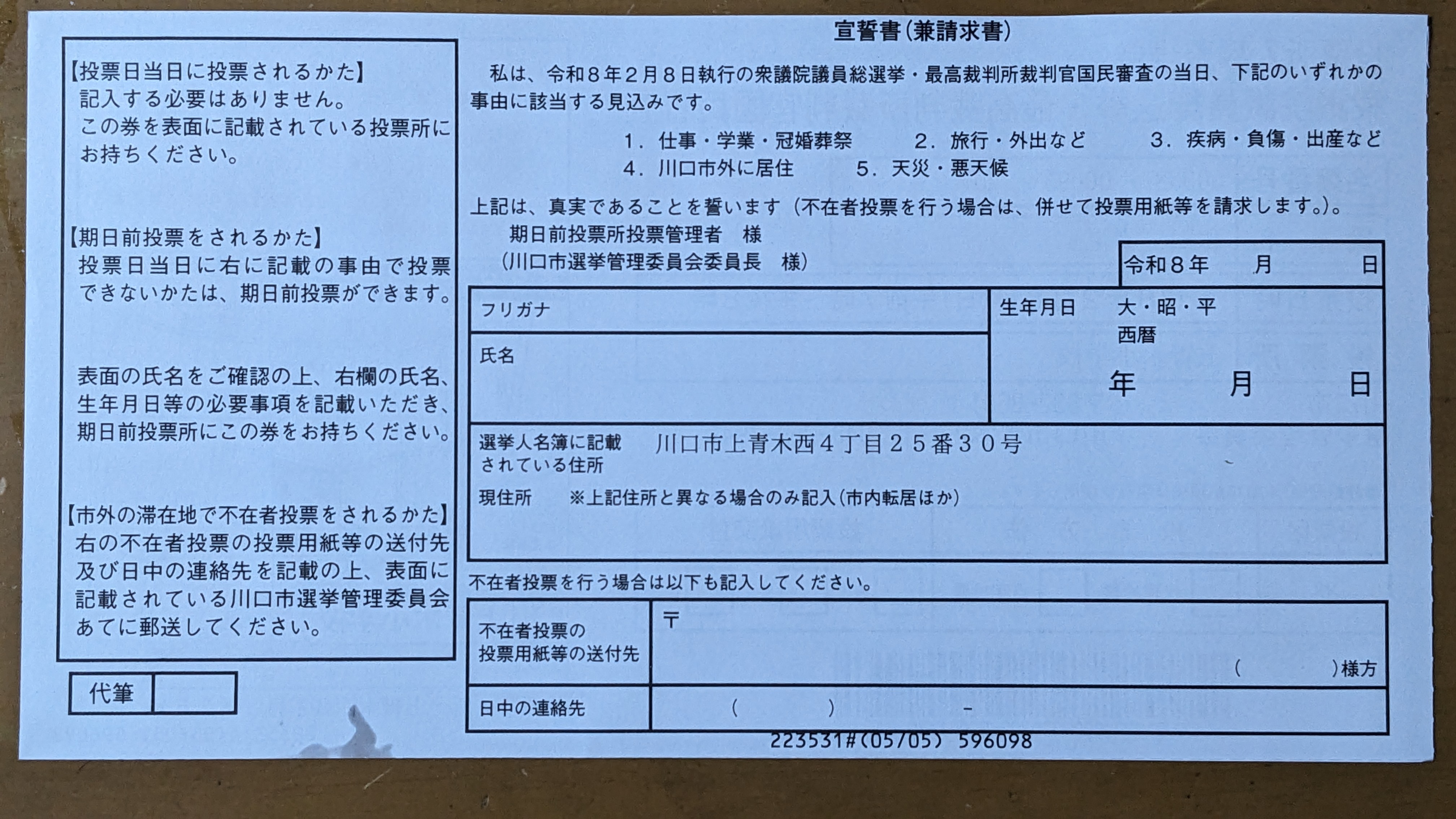 そうするとまあ、基本的には、投票日に指定された投票所に行くか、投票日より前に期日前投票ができるところに行くか、っていうことになりますかね。どちらも基本的に、投票所入場整理券は持っていくんですね。